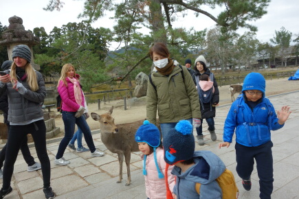 奈良2日目です。伊原家は朝食バイキング。本日は伊原家と一緒に鹿と大仏を楽しみました。
