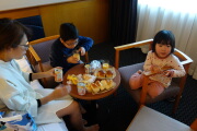 同じフロアのお部屋でしたので、子供たちはパジャマパーティーで仲良くなりました。