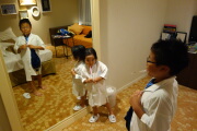 子供用のパジャマもついてます。お風呂に入って寝ます。