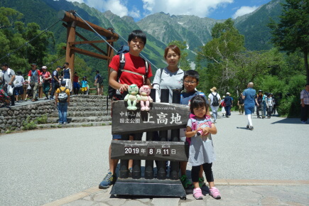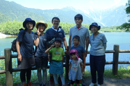 徳澤園の近くで鈴木家、中川家、宮内家の集合写真です。無事に合流できて良かったです。