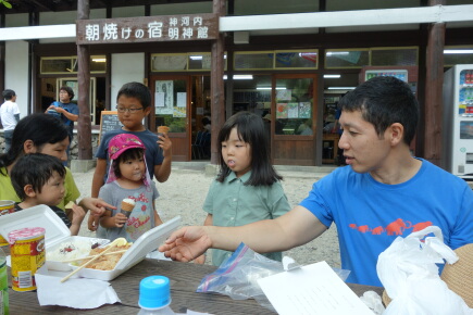 1時過ぎてますが、ようやく山ごはんタイムです。河童橋で買った山賊弁当をみんなで食べました。
