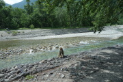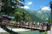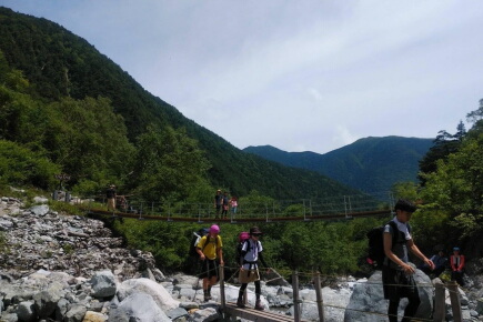 時間の短い右岸コースで、大野家と明神館で合流を目指します。上高地と言えば河童橋です。