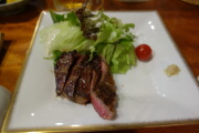 鈴木家はテント泊です。宮内家は夕飯がついているので、美味しいステーキをいただきました。