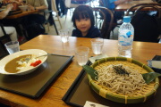 お昼は河童橋のカフェでカレーとざるそばをいただきました。そして、暑い中、バスの大行列で、