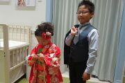 娘の運動会に合わせて、じいじをよんで早めの七五三のスタジオ撮影をしようとの企画でしたが、