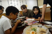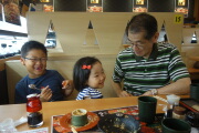 じいじの肩たたきをしてから、江坂でラーメンを食べて、新大阪へじいじを見送りに行きました。
