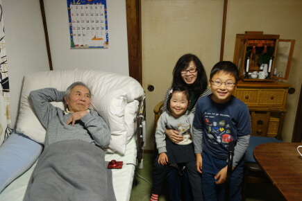 義姉はぐったりしてました笑。そして、じいじのいる実家に戻ります。今回は寝袋持参で消灯です。