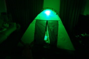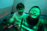 モンスターズインクのハロウィン用提灯をテントの明かりにしました。