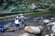 子供たちは元気に川で遊びました。まだ帰りたくない様子ですが、