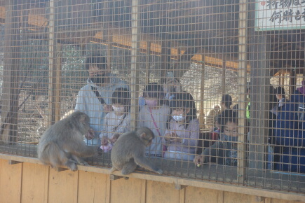 遊具でたっぷり遊んでから、山頂でお猿さんに会います。