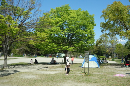 団地の公園には桜はほぼなく、新緑が綺麗でした。