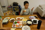 久々にトーマスの敷物を敷いて、おやつを食べます。