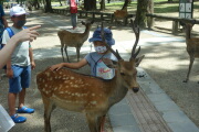 満たされていないのでしょう。鹿煎餅を買って娘が鹿に与えました。娘は鹿と仲良くなっておりました。