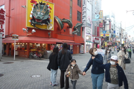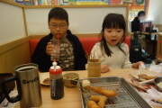 遅めの出発で、なんばです。パート終わりのママと合流して、早めの夕飯は串カツだるまです。