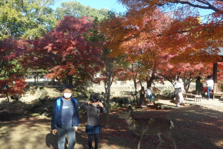 翌日は紅葉の奈良へ行きました。早朝の麦散歩をしてきたママと合流して、