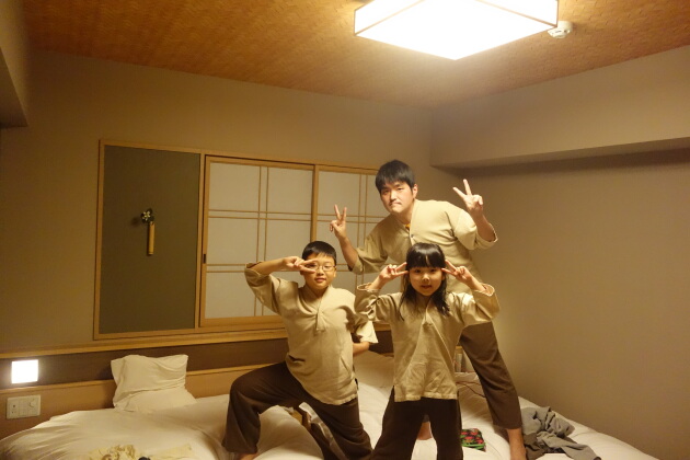 奈良の集合写真が無かったので、今回もドーミーインでの3人集合写真となりました。