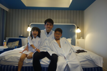 駅に戻って予定より1時間遅れましたが、本日は3人でホテルにお泊まりします。