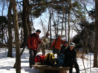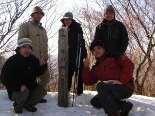 山頂での記念写真です。途中、道に迷いましたが、同じく迷った方々に