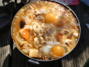 本日のメニューはトン汁の具で作ったチゲ雑炊です。玉子美味い!