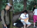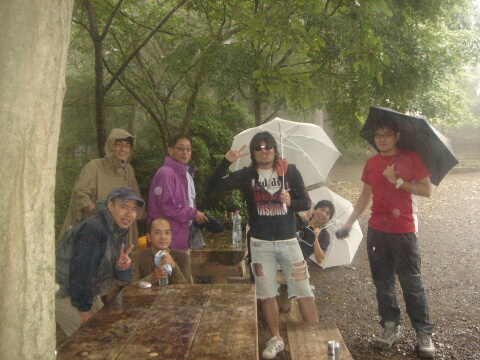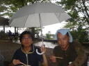 雨が降ってきましたが、屋根つきのベンチは満席です。屋根なしベンチで、