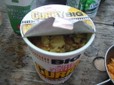そして、カップラーメンと水持参。東さん持参の硬水(CONTREX)で食べます。