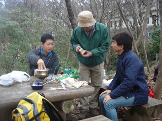 さっそく、メシです。鳴海さんはもう少し登ろうとしたのですが、
