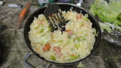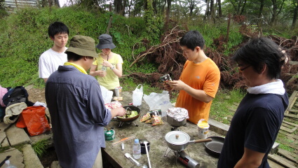 10:30ですが、山頂で昼食を作ります。本日の料理は冷凍炒飯と冷凍ピラフです。