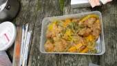 作る料理は汁なしカレーうどん。汁あるじゃん(笑)。汁とうどんを分けて作るところが独創的なのです。