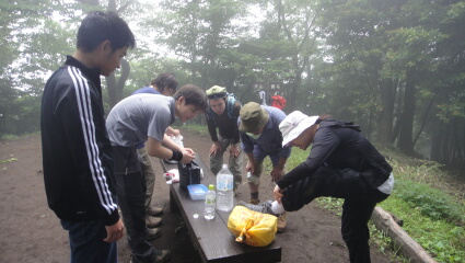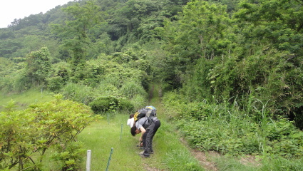 下山もヒルズチェックが続きます。ヒルが沢山いて、女性陣がキャーキャー騒ぎます。その度にヒル取り名人の