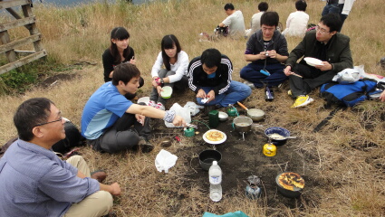 先に登って、山ごはんを作ることになったのです。きっつい登りでしたが、何とか全員集合して、大野くんが