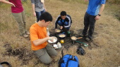 戚さん、山田さん、王さん、サングさんと荷物リレー。てか、これ鳴海さんの荷物じゃん。食材と機材を持って、