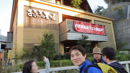 バスでおふろの王(ワン)様へ向かいます。趙さんは風邪を引いており、陳さんと港南台で忘年会を待ちます。