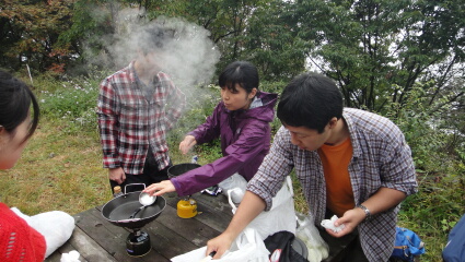 御岳コースです。日の出山の予定でしたが、雨なのでコースを変えて見晴台で料理を作って終了コース。