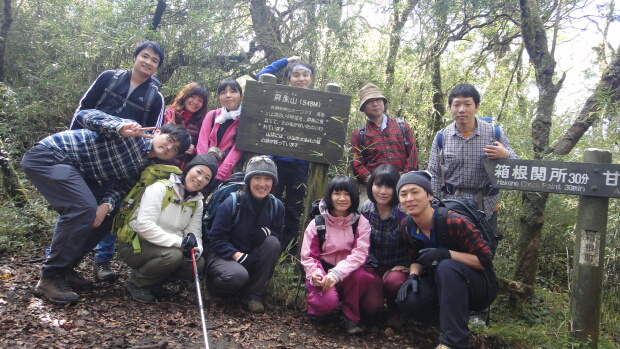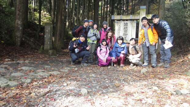 箱根旧街道のスタート地点で集合写真です。鳴海さんはいったいどこにいるのでしょうか?