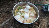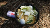 本日の山ごはんは闇鍋です。病み上がりの宮内が作る病み鍋。風邪ウィルス入りという怖い闇鍋です。