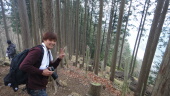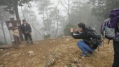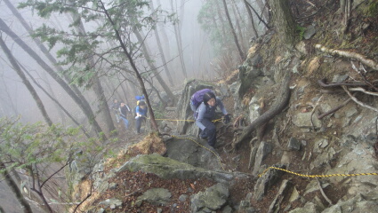 とにかくきつい山です。霧の中の急坂を登りきり、ようやく蕨山の山頂に着きます。