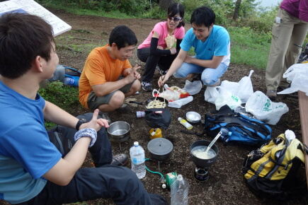 そして、山頂で料理を始めちゃってますが、メンバー紹介を続けます。2年ぶりの参加となる野口さん。