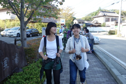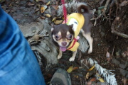 温泉入る組と入らない組でお別れ。入らない組の宮内と上の2名は、マロンちゃんをバッグに移しているうちに