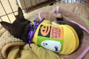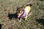 まだ10時半ですよ。鳴海さん。山頂でマロンちゃんにハロウィンスカーフをつけておめかしします。