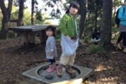 咲空ちゃんの「やって」攻撃を宮内が受けている間に弘法山に到着。綺麗な蜘蛛がいます。鐘を鳴らします。