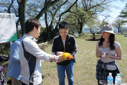 疲れた体に先ずは甘いものから。女子力の高い李さんに舟先輩と修先輩も感心しております(笑)。