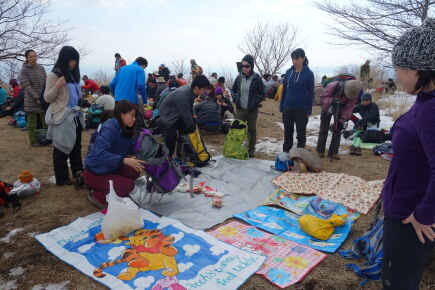 開けた幕山山頂の集合写真です。写真撮ってもらいました。カメラ3つ×2ショット。