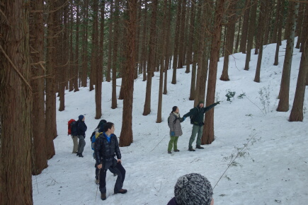 ここで、アンディの指差す方向へ行ったのが運の尽き。皆、雪山楽しーとか言って登山していたけど道に迷う。
