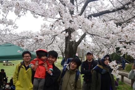 標高205mの最高地点となる展望台で集合写真です。最後に大野夫妻、桜子ちゃん誕生おめでとう!