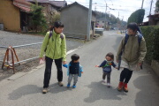 さくら祭りをやっているようで、祭囃子が流れ、にぎやかです。岳くんも咲空ちゃんも良く頑張って歩きました。