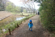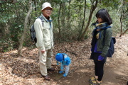 陽気も良くなって、程よいウォーキングです。右上の写真は鳴海さんの前で疲れ果てた岳の写真ではなくて、