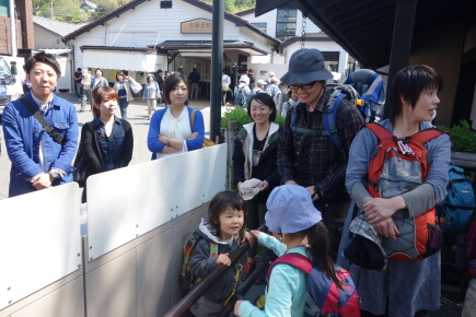 修さんが茶店で竹の子の天ぷらを買って塩をゲット。何でも揃うなぁ。再び鍋の贈呈式をして解散です。