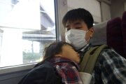 抱っこ紐だと前が見えなくて大変です。ポニーテールの李さんも渋滞メーカーになっております(笑)