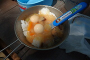 何やら伝達がうまく行っていなかったようで、スープの素も水も白飯も持って来なかった人多数。