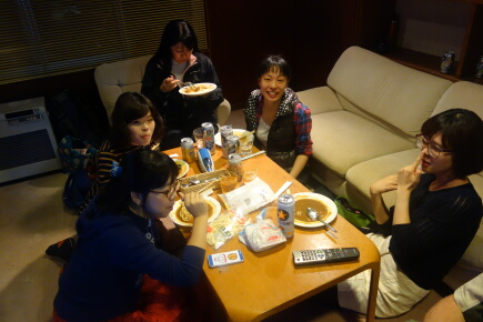 聞きます(笑)。今回、彼女や奥さんのいない男性は岳だけです(笑)。飲み終わったら温泉へ行って消灯です。
